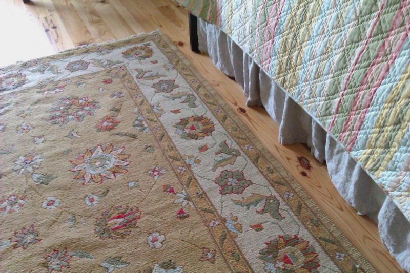 and replace heavy patterned rugs with light colors.