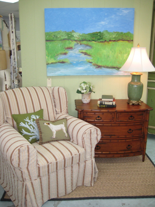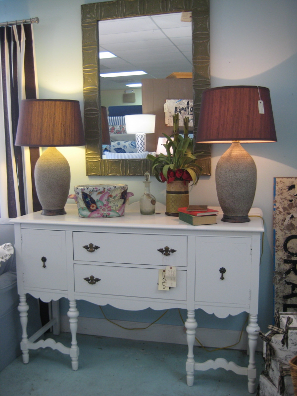 Certain new pieces, like dining room furniture, can cost a small fortune nowadays, and there are beautiful dining sets made in the last 40-80 years at resale shops for a fraction of the cost. Usually they are solid wood, and can have gorgeous mahogany veneers. With a little touch-up and fresh fabric you’ll have whole new room.