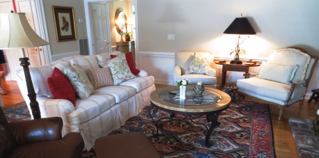 With a family wedding coming up, it was time to freshen up this home. The client is fond of Shabby Chic and French Country styles, and wants the home to be practical. The formal living room was a key space – the homeowner felt it was dark and tired looking. The goal was to lighten up the space in both color and mood, so that it would be just as inviting to guests as the family room and encourage use of the entire home during a planned party. Here’s what the room looked like before: